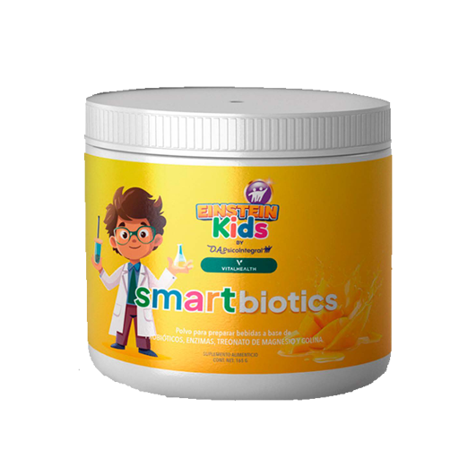 SMARTBIOTICS KIDS es una fórmula avanzada de probióticos clínicamente estudiados, inulina de agave y pulpa de mango, diseñada para mejorar la digestión, apoyar el desarrollo neurológico y fortalecer el sistema inmunológico. Su acción combinada favorece la absorción de nutrientes, equilibra la microbiota y potencia la capacidad de aprendizaje desde la infancia.